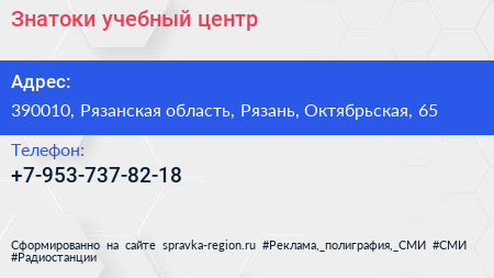 Знатоки, учебный центр по адресу 390010, Рязанская область, Рязань, Октябрьская, 65 в дальнейшем Организация, размещена в следующих категориях: