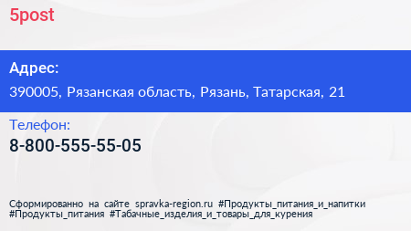 5post по адресу 390005, Рязанская область, Рязань, Татарская, 21 в дальнейшем Организация, размещена в следующих категориях: