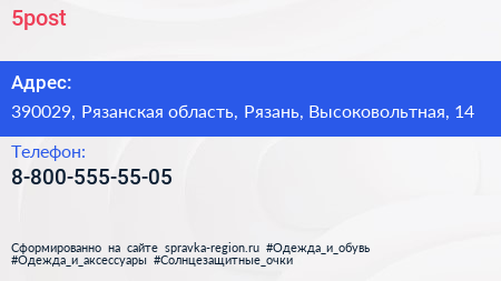 5post по адресу 390029, Рязанская область, Рязань, Высоковольтная, 14 в дальнейшем Организация, размещена в следующих категориях: