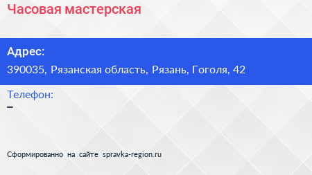 Часовая мастерская по адресу 390035, Рязанская область, Рязань, Гоголя, 42 в дальнейшем Организация, размещена в следующих категориях: