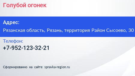 Голубой огонек по адресу Рязанская область, Рязань, территория Район Сысоево, 30 в дальнейшем Организация, размещена в следующих категориях: