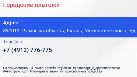 Городские платежи по адресу 390013, Рязанская область, Рязань, Московское шоссе, 6д в дальнейшем Организация, размещена в следующих категориях: