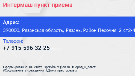 Интермаш, пункт приема по адресу 390000, Рязанская область, Рязань, Район Песочня, 2 ст2-4 в дальнейшем Организация, размещена в следующих категориях: