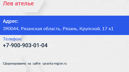 Лев, ателье по адресу 390044, Рязанская область, Рязань, Крупской, 17 к1 в дальнейшем Организация, размещена в следующих категориях: