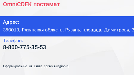 OmniCDEK, постамат по адресу 390013, Рязанская область, Рязань, площадь Димитрова, 3 в дальнейшем Организация, размещена в следующих категориях: