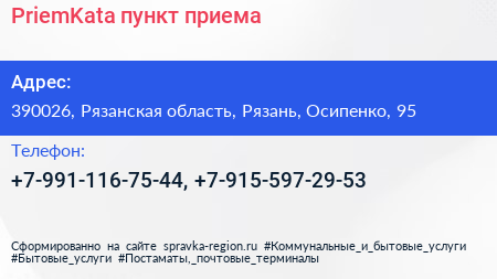 PriemKata, пункт приема по адресу 390026, Рязанская область, Рязань, Осипенко, 95 в дальнейшем Организация, размещена в следующих категориях: