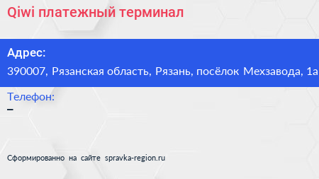 Qiwi, платежный терминал по адресу 390007, Рязанская область, Рязань, посёлок Мехзавода, 1а в дальнейшем Организация, размещена в следующих категориях: