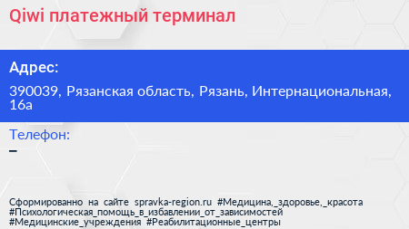 Qiwi, платежный терминал по адресу 390039, Рязанская область, Рязань, Интернациональная, 16а в дальнейшем Организация, размещена в следующих категориях: