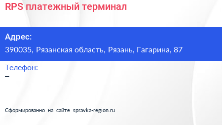 RPS, платежный терминал по адресу 390035, Рязанская область, Рязань, Гагарина, 87 в дальнейшем Организация, размещена в следующих категориях: