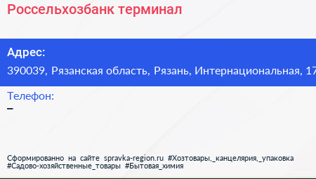 Россельхозбанк, терминал по адресу 390039, Рязанская область, Рязань, Интернациональная, 17 в дальнейшем Организация, размещена в следующих категориях: