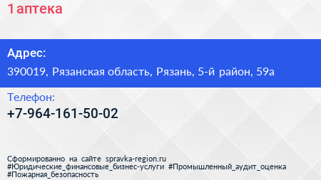 №1, аптека по адресу 390019, Рязанская область, Рязань, 5-й район, 59а в дальнейшем Организация, размещена в следующих категориях: