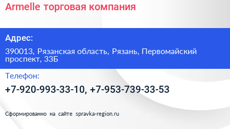 Armelle, торговая компания по адресу 390013, Рязанская область, Рязань, Первомайский проспект, 33Б в дальнейшем Организация, размещена в следующих категориях:
