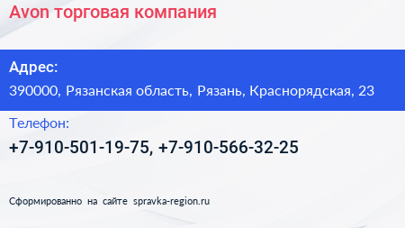 Avon, торговая компания по адресу 390000, Рязанская область, Рязань, Краснорядская, 23 в дальнейшем Организация, размещена в следующих категориях: