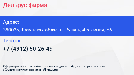 Дельрус, фирма по адресу 390026, Рязанская область, Рязань, 4-я линия, 66 в дальнейшем Организация, размещена в следующих категориях: