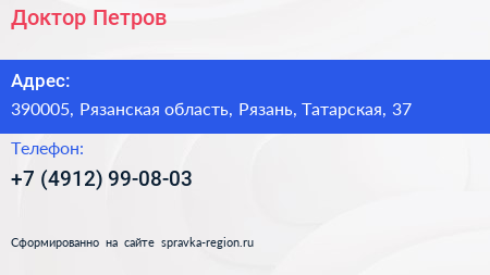 Доктор Петров+ по адресу 390005, Рязанская область, Рязань, Татарская, 37 в дальнейшем Организация, размещена в следующих категориях: