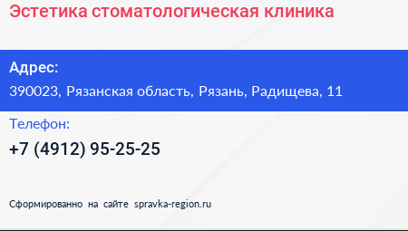 Эстетика, стоматологическая клиника по адресу 390023, Рязанская область, Рязань, Радищева, 11 в дальнейшем Организация, размещена в следующих категориях: