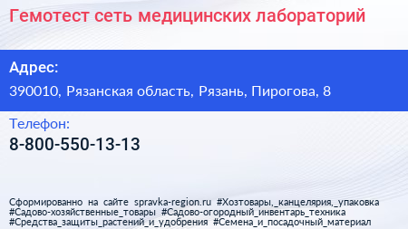 Гемотест, сеть медицинских лабораторий по адресу 390010, Рязанская область, Рязань, Пирогова, 8 в дальнейшем Организация, размещена в следующих категориях: