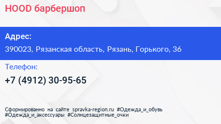 HOOD, барбершоп по адресу 390023, Рязанская область, Рязань, Горького, 36 в дальнейшем Организация, размещена в следующих категориях: