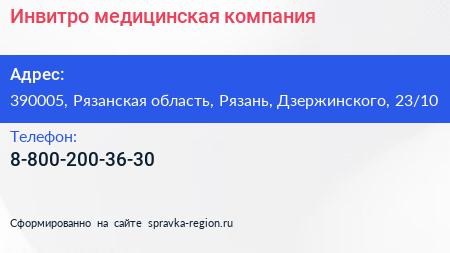 Инвитро, медицинская компания по адресу 390005, Рязанская область, Рязань, Дзержинского, 23/10 в дальнейшем Организация, размещена в следующих категориях: