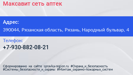 Максавит, сеть аптек по адресу 390044, Рязанская область, Рязань, Народный бульвар, 4 в дальнейшем Организация, размещена в следующих категориях: