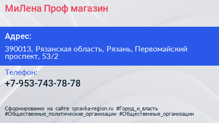 МиЛена Проф, магазин по адресу 390013, Рязанская область, Рязань, Первомайский проспект, 53/2 в дальнейшем Организация, размещена в следующих категориях: