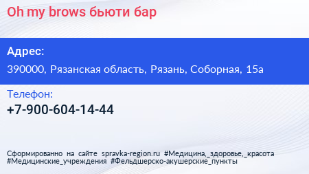 Oh, my brows!, бьюти-бар по адресу 390000, Рязанская область, Рязань, Соборная, 15а в дальнейшем Организация, размещена в следующих категориях: