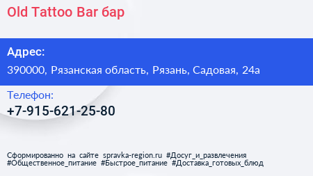Old Tattoo Bar, бар по адресу 390000, Рязанская область, Рязань, Садовая, 24а в дальнейшем Организация, размещена в следующих категориях: