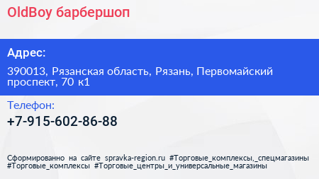OldBoy, барбершоп по адресу 390013, Рязанская область, Рязань, Первомайский проспект, 70 к1 в дальнейшем Организация, размещена в следующих категориях: