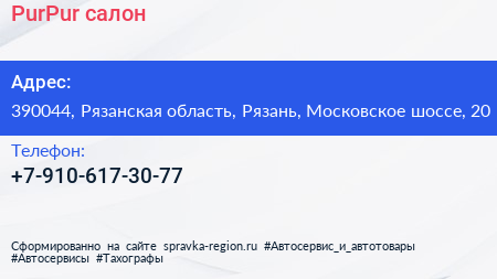 PurPur, салон по адресу 390044, Рязанская область, Рязань, Московское шоссе, 20 в дальнейшем Организация, размещена в следующих категориях:
