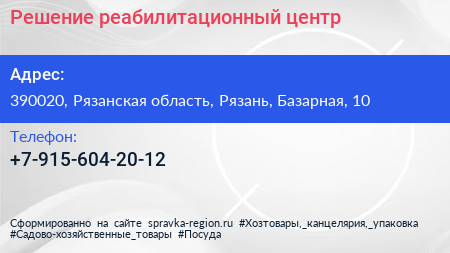 Решение, реабилитационный центр по адресу 390020, Рязанская область, Рязань, Базарная, 10 в дальнейшем Организация, размещена в следующих категориях: