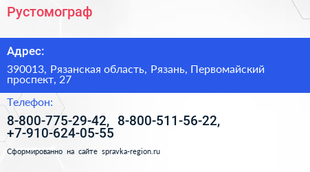 Рустомограф по адресу 390013, Рязанская область, Рязань, Первомайский проспект, 27 в дальнейшем Организация, размещена в следующих категориях: