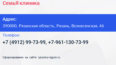 СемьЯ, клиника по адресу 390000, Рязанская область, Рязань, Вознесенская, 46 в дальнейшем Организация, размещена в следующих категориях: