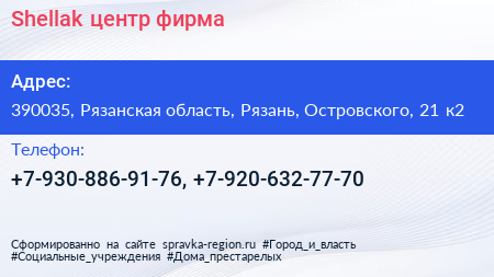 Shellak центр, фирма по адресу 390035, Рязанская область, Рязань, Островского, 21 к2 в дальнейшем Организация, размещена в следующих категориях: