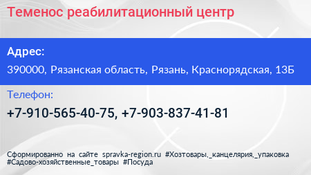 Теменос, реабилитационный центр по адресу 390000, Рязанская область, Рязань, Краснорядская, 13Б в дальнейшем Организация, размещена в следующих категориях: