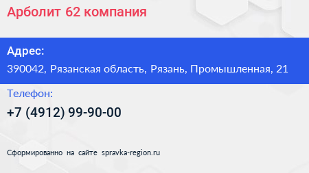 Арболит 62, компания по адресу 390042, Рязанская область, Рязань, Промышленная, 21 в дальнейшем Организация, размещена в следующих категориях: