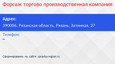 Форсаж, торгово-производственная компания по адресу 390006, Рязанская область, Рязань, Затинная, 27 в дальнейшем Организация, размещена в следующих категориях: