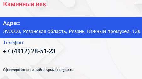 Каменный век по адресу 390000, Рязанская область, Рязань, Южный промузел, 13в в дальнейшем Организация, размещена в следующих категориях: