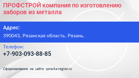 ПРОФСТРОЙ, компания по изготовлению заборов из металла по адресу 390043, Рязанская область, Рязань, в дальнейшем Организация, размещена в следующих категориях: