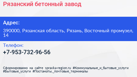 Рязанский бетонный завод по адресу 390000, Рязанская область, Рязань, Восточный промузел, 14 в дальнейшем Организация, размещена в следующих категориях: