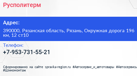 Русполитерм по адресу 390000, Рязанская область, Рязань, Окружная дорога 196 км, 12 ст10 в дальнейшем Организация, размещена в следующих категориях: