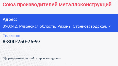 Союз производителей металлоконструкций по адресу 390042, Рязанская область, Рязань, Станкозаводская, 7 в дальнейшем Организация, размещена в следующих категориях:
