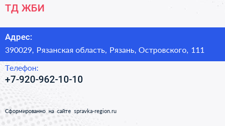 ТД ЖБИ по адресу 390029, Рязанская область, Рязань, Островского, 111 в дальнейшем Организация, размещена в следующих категориях: