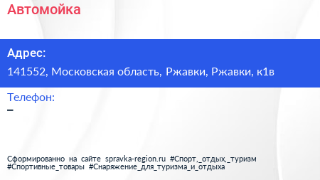 Автомойка по адресу 141552, Московская область, Ржавки, Ржавки, к1в в дальнейшем Организация, размещена в следующих категориях: