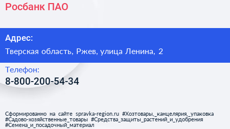 Росбанк, ПАО по адресу Тверская область, Ржев, улица Ленина, 2 в дальнейшем Организация, размещена в следующих категориях: