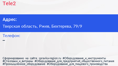 Tele2 по адресу Тверская область, Ржев, Бехтерева, 79/9 в дальнейшем Организация, размещена в следующих категориях: