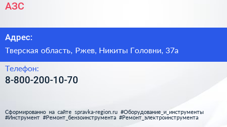 АЗС по адресу Тверская область, Ржев, Никиты Головни, 37а в дальнейшем Организация, размещена в следующих категориях:
