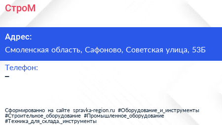 СтроМ по адресу Смоленская область, Сафоново, Советская улица, 53Б в дальнейшем Организация, размещена в следующих категориях: