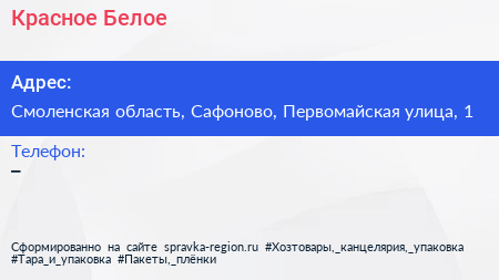 Красное & Белое по адресу Смоленская область, Сафоново, Первомайская улица, 1 в дальнейшем Организация, размещена в следующих категориях: