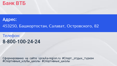Банк ВТБ по адресу 453250, Башкортостан, Салават, Островского, 82 в дальнейшем Организация, размещена в следующих категориях: