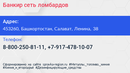 Банкир, сеть ломбардов по адресу 453260, Башкортостан, Салават, Ленина, 38 в дальнейшем Организация, размещена в следующих категориях: